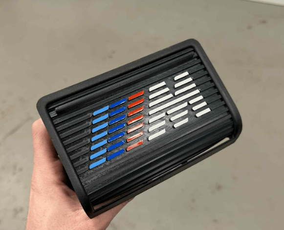 Középkonzol hátsó hamutartó rolója E46-hoz, egyszerű csíkos és M logós kivitelben.